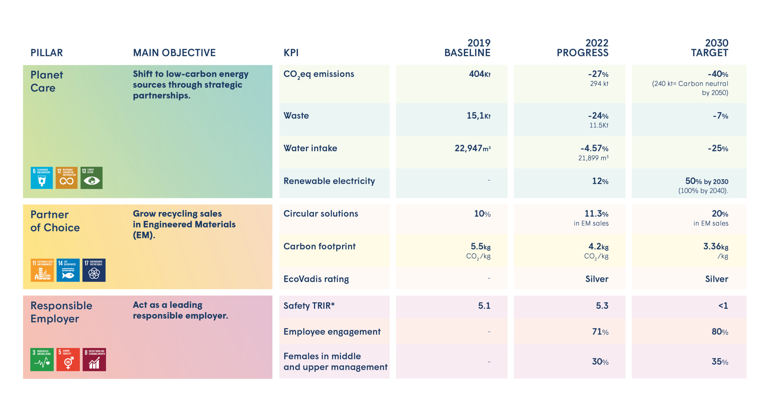 “Our focus remains on making progress on our decarbonization roadmap, partnering to develop sustainable and circular solutions and offering a safe and inclusive work environment for our employees.”